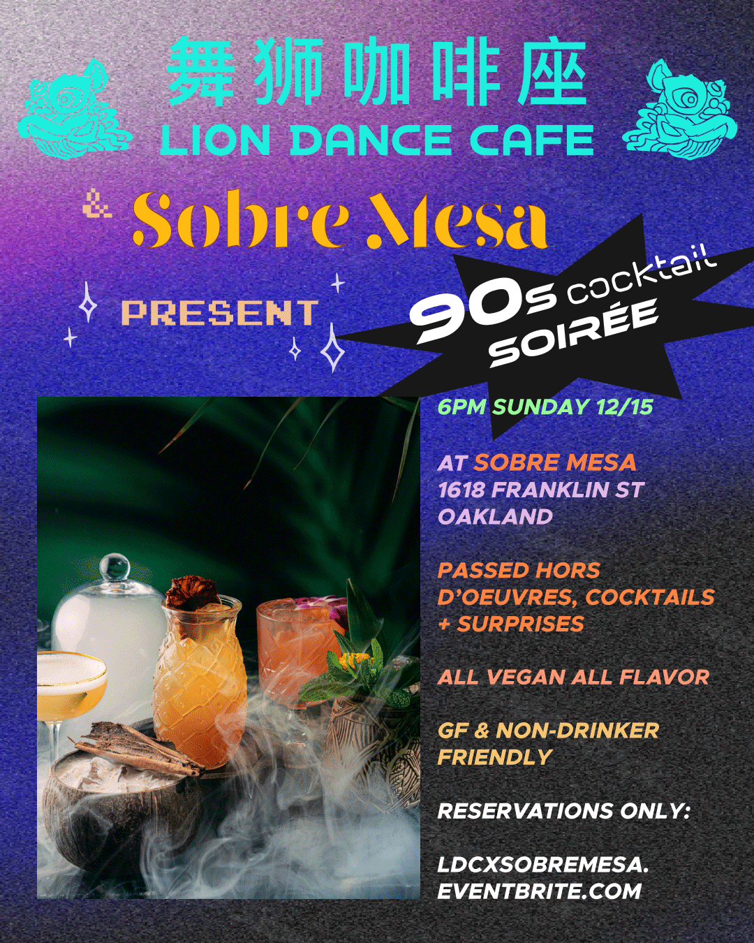Join us for a throwback 90’s Cocktail Soirée with Lion Dance Cafe and Chef Nelson German at Sobre Mesa on December 15, 2024 at 6:00 PM!
